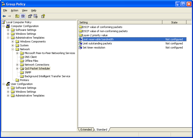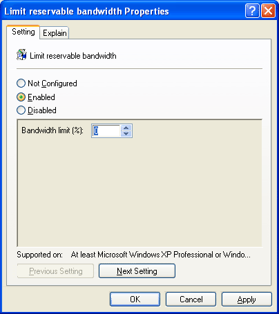 5) Limit reservable bandwidth Properties ih Setting ah Enable ti aw..